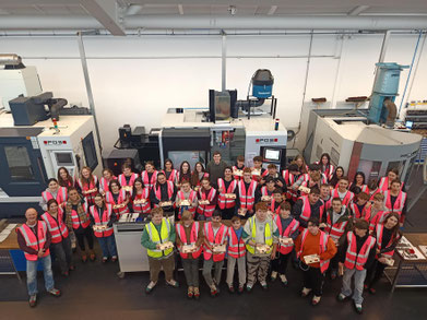 Eine Gruppe wurde jeweils von einem Mitarbeiter in einem ca. 1,5-stündigen Rundgang durch den Betrieb geführt und die anderen Schüler durften in dieser Zeit mit Hilfe der Auszubildenden in der Lehrwerkstatt an verschiedenen Stationen ein kleines Werkstück herstellen. Dieses konnte jeder Schüler am Ende der Betriebserkundung mit nach Hause nehmen.